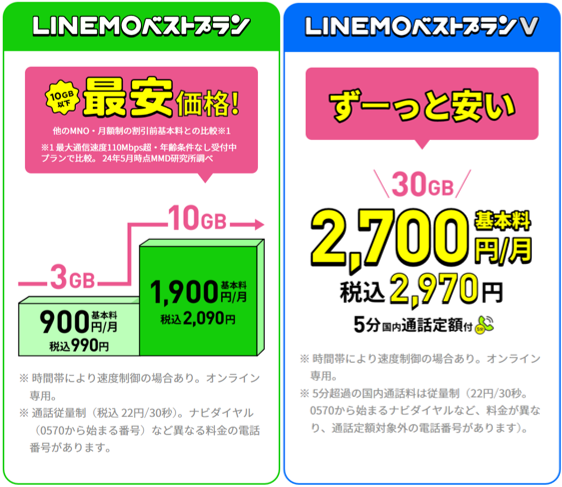 LINEMOベストプラン:3GBまで990円、10GBまで2,090円で利用可能!